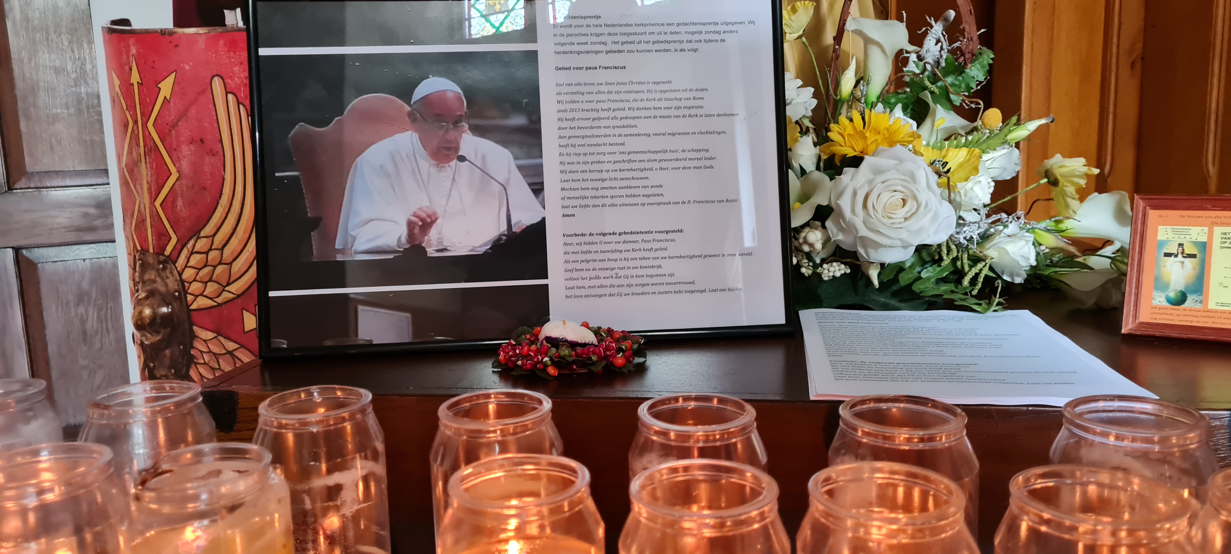 Beste bezoeker van de site, broeders en zusters in Christus, de komende zaterdag 26 april om 10.00 uur is de uitvaart live te volgen op dit kanaal van het Vaticaan. Zie nu de opbaring in de Sint Pieter. Ook in de parochiekerk H. Antonius Abt, Brink 10 St. Anthonis kunt u het gebed voor paus Franciscus bidden en een lichtje ontsteken opdat het eeuwige licht hem moge verlichten en dat hij moge rusten in vrede.