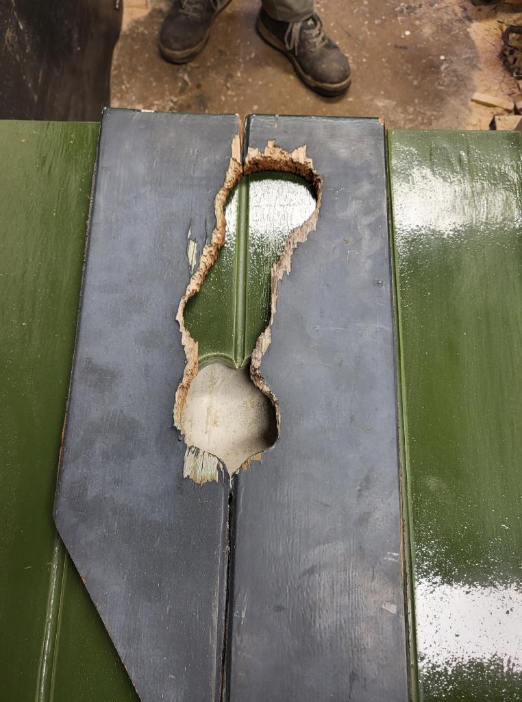 Het luikje bovenop de zolder is enige tijd geleden door een specht flink toegetakeld. Hij/zij heeft een groot gat in het houtwerk gemaakt, waardoor we genoodzaakt waren dit te repareren. Omdat we moesten wachten vanwege het project met de vleermuizen hebben vrijwilligers uit Groeningen dit pas deze week kunnen uitvoeren. Dit project is overigens klaar en afgerond. Het luikje is vervolgens gedemonteerd en hebben de vrijwilligers in de werkplaats het onderhanden genomen. De 2 middelste planken zijn vakkundig gedemonteerd en vervangen door 2 nieuwe planken. Het geheel is door de vrijwilligers opnieuw in de grondverf gezet en hierna voorzien van een op kleur gebrachte verflaag, zodat het weer beschermd is tegen weersinvloeden. Bijgaand een aantal foto’s van voor en na de reconstructie. SANK. Theo van Kessel.